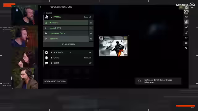 02:07:41Ein weiteres Quizsegment widmet sich dem klassischen Eroberungsmodus. Die Fragen klären Details wie die maximale Spieleranzahl und die Unterschiede zu Battlefield 2042, wie einen stärkeren Fokus auf Klassen. Danach bereitet sich das Team auf die Karte Operation Firestorm in Conquest vor. Der Start ist von technischen Schwierigkeiten geprägt, da nicht alle automatisch in denselben Squad und Server gelangen.