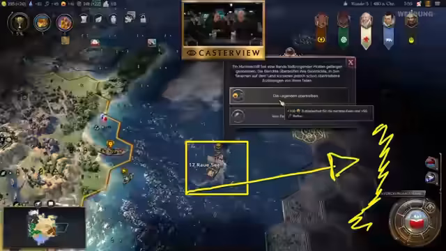 01:07:06Die aktuelle Phase ist das Zeitalter der Erkundung, in dem die Teilnehmer Vermächtnispunkte gewinnen können. Diese Punkte sind in die Bereiche Kultur, Wirtschaft, Militär und Wissenschaft unterteilt. Eine wichtige Quelle für Erfolge ist das Finden von bis zu zwölf Reliquien, die in Tempeln ausgestellt werden müssen. Steinwallen ist mit Schiffen unterwegs nach Osten, um die neue Welt zu erkunden und dort Siedlungen in der Nähe von exotischen Ressourcen zu gründen. Chiara ist mit einem Schiff auf hoher See unterwegs, riskiert jedoch Schäden durch die raue See. Es wird diskutiert, wie weit sie fahren kann und ob sie das rettende Ufer erreicht. Das Zeitalter der Erkundung spiegelt die Entstehung der modernen Reiche mit Kolumbus wider, der riskante Investitionen tätigte, um neue Ressourcen zu finden. Der Silberhandel zwischen Spanien und China veränderte die Welt fundamental. Es wird überlegt, ob man zu den Spielern selbst gehen und mit ihnen sprechen sollte.