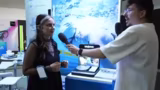 02:53:02Ein erstes Highlight sind Kopfhörer, die nicht wie gewohnt in den Ohrkanal eingeführt werden, sondern durch Vibrationen des Schädels Klangwellen ins Gehirn leiten. Diese Technik soll besonders für Sportler und Konzertbesucher vorteilhaft sein, da das Trommelfell nicht belastet wird. Ein Moderator testet die Kopfhörer live, bestätigt den Klang und stellt deren Wasserdichtigkeit für bis zu zwei Meter Tiefe als weitere Besonderheit heraus.