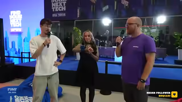 00:00:00Herzlich willkommen zum vierten Tag der IFA 2025 im Live-Stream aus Halle 5.2a. Der Stream begrüßt die Zuschauer vor Ort und online und gibt einen kurzen Einblick in den Ablauf der Veranstaltung. Die Moderatoren haben nach den ersten Tagen der Messe bereits eigene Highlights, wie einen Exoskelett-Test und ein PowerPoint-Karaoke-Spiel, getestet und präsentieren diese. Der Fokus liegt auf der Vorstellung des aufregenden Programms für den aktuellen Tag, das von Roboter-Themen bis hin zu historischen IFA-Rückblicken reicht.