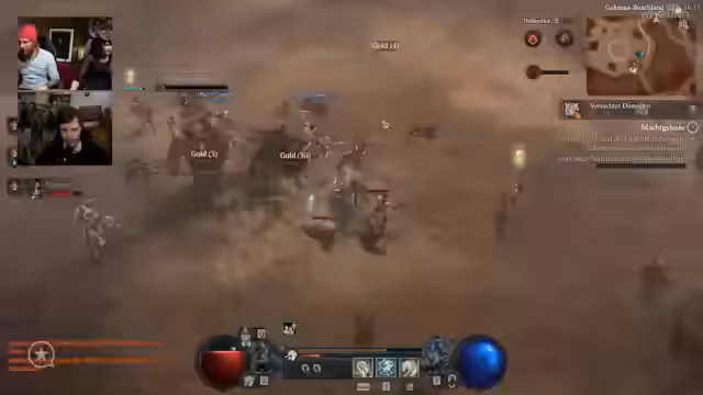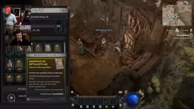 01:22:07Der Stream wechselt in einen praktischen Teil, in dem die Teilnehmer live in Season 12 von Diablo 4 eintauchen. Nach anfänglichen Verwirrungen bei der Charakterauswahl entscheiden sie sich, als Spiritborn zu spielen. Das zentrale Ziel ist das Finden eines blutbefleckten Siegels, um sich in den Butcher zu verwandeln. Nach dem Erfolgreichen Finden des Siegels gelangen sie in den 'Schlachthaus', einen neuen Spielmodus, in dem sie als Butcher gegen Wellen von Monstern und Charakterklassen antreten müssen, um innerhalb eines Zeitlimits einen Kill-Ziel zu erreichen und besondere Beute zu sammeln.