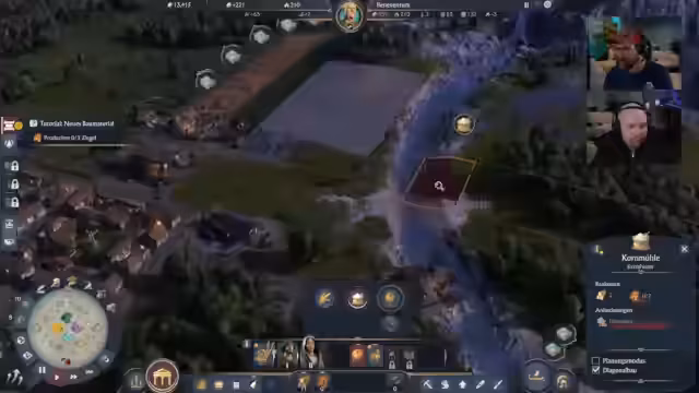 02:11:46Trotz der Bemühungen kämpfen die Spieler weiterhin mit einem Mangel an Holz, was zu einer weiteren Expansion der Holzproduktion führt. Es wird der Tipp gegeben, das Ringmenü mit Rechtsklick für schnellen Zugriff auf Straßen und Lagerhäuser zu nutzen. Die Notwendigkeit, einen Palast zu bauen, wird angesprochen, wobei die strategische Platzierung im Inland empfohlen wird, um ihn vor Eroberungen zu schützen. Die Produktion von Ziegeln und Weizen wird in Angriff genommen, wobei die Kornmühle und die Bäckerei in den Fokus rücken. Es wird erklärt, dass Lehmgruben und Ziegeleien ein 2:1-Verhältnis haben und Köhler sowie Ziegeleien negative Effekte auf umstehende Gebäude und die Gesundheit haben, was die Einrichtung von Industriegebieten abseits der Wohngebiete erforderlich macht. Die Kornmühle erfordert einen Flussanschluss und somit den Bau von Brücken. Der Diagonalbau wird als nützliche Neuerung für Straßen hervorgehoben, aber bei Gebäudeblöcken als weniger praktisch empfunden. Die Notwendigkeit, Plebejer auszubilden, um Arbeitskräfte zu sichern, wird betont.