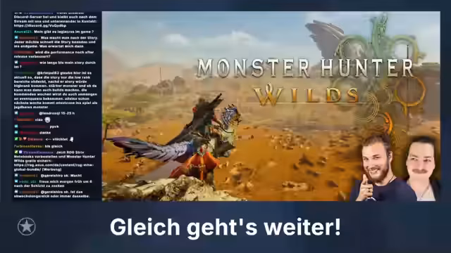 00:12:12Der Stream startet mit einer Vorstellung für die Zuschauer. Als Hauptinhalt wird eine Gameplay-Demo der Vollversion von Monster Hunter Wilds angekündigt, die am nächsten Tag erscheint. Ein zentrales Anliegen des Streamers ist der Koop-Modus, weshalb ein weiterer Streamer namens Jules eingeladen wird, gemeinsam zu zocken. Es wird eine Partnerschaft mit ROG Republic of Gamers beworben, die bis Ende Mai Vorbestellungen für ausgewählte Laptops mit einer Gratis-Kopie des Spiels belohnt. Der Fokus des Streams liegt auf dem gemeinsamen Entdecken des Spiels, mit der Möglichkeit für Zuschauer, über den Chat Feedback zu geben.