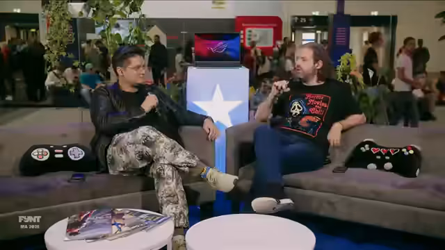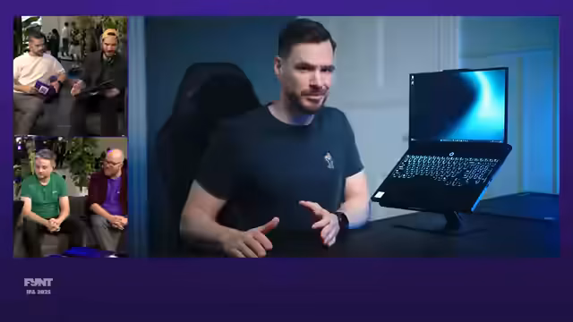 04:43:31Im rappelvollen Studio der IFA 2025 werden die Gäste vorgestellt. Zu Beginn begrüßt der Streamer Just Becky und ihren Kollegen Daniel, gefolgt von Lin und Patrick. Die Gäste berichten von ihrer Erschöpfung und ihrer Verbundenheit zur Messe, was einen humorvollen Austausch zwischen den Anwesenden auslöst.