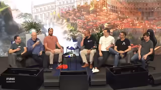 00:57:55Der Hauptblock des Streams ist die große Anno 117-Diskussion, die 'Elefantenrunde'. Der Sprecher stellt die Runde mit hochkarätigen Gästen vor, darunter die Weltrekordhalterin Radlerauge, Maurice Weber und den Creative Director von Ubisoft, Manuel Reinherr. Der Fokus liegt auf den großen Neuerungen des Spiels, insbesondere auf dem überarbeiteten Bedürfnissystem, das mehr strategische Vielfalt und Entscheidungsfreiheit bietet, und den zwei neuen Startregionen Latium und Albion.