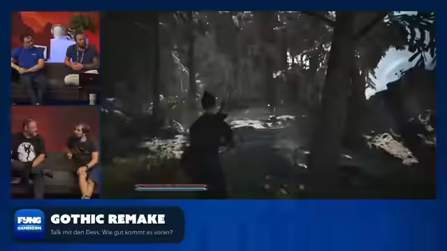 00:00:00Der Stream startet mit den Entschuldigung für ein technisches Chaos, das zu einem unkoordinierten Zeitplan und einem Stromausfall führte, der den Ablauf unterbrach. Trotzdem wurde ein Update zum Entwicklungsstand von 'Gothic' gegeben. Das Spiel sei sehr weit fortgeschritten, die komplette Welt stünde, alle Kreaturen und NPCs seien vorhanden und alle Sprachaufnahmen seien abgeschlossen. Es ginge nun um das finale Polieren, Bugfixing und Balancing. Die Sprecher der Charaktere wurden teilweise neu besetzt, wobei die Community in einem Voting bei der Entscheidung mit eingebunden wurde, um die Authentizität der Charaktere zu erhöhen.