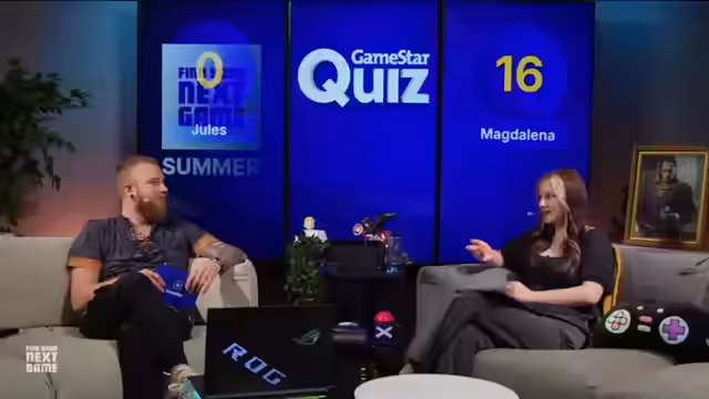 00:12:49Der Streamer begrüßt das Publikum zum vierten Tag von Find Your Next Game Summer und gibt den Fokus auf die anstehende große Eröffnungsshow des Summer Game Fest von Jeff Keighley bekannt. Es werden Neuankündigungen und viele Partner erwartet, weshalb man gespannt in den Abend startet. Magdalena und der Streamer stellen sich als Dream-Team vor und begrüßen Daniel, der als Moderator für das bevorstehende GameStar Quiz fungieren wird und sich selbst als eigene Instanz bezeichnet.