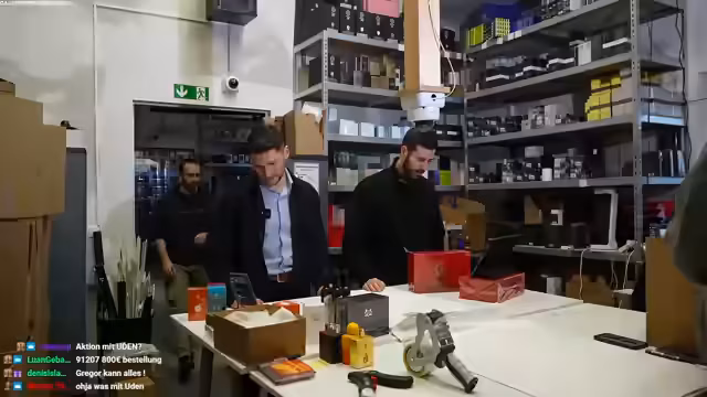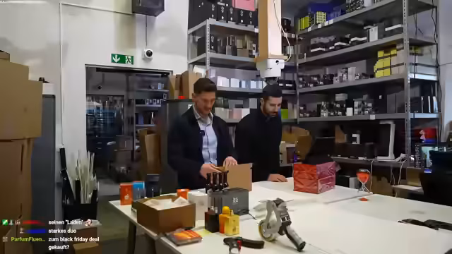 01:49:13Max und Nico übernehmen den "Puckstream" und begrüßen die Zuschauer. Sie kündigen Special Deals und Geschenke an, die in den nächsten Bestellungen enthalten sein werden, darunter Roberto Ugolini, Marc Gebauer Chiliöl, Parfums de Marly Discovery Collection, Petra White Label und Lava Lampen. Auch Kunden, die bereits bei "Gebauer und Gebauer" bestellt haben, erhalten Geschenke. Die "Puckstream"-Session dient als Überbrückung, bevor der Haupt-Stream am Abend beginnt. Es wird ein Deal angekündigt: Die nächsten fünf Kunden, die einen Marc Gebauer Vollflakon bestellen, erhalten ein Petra White Label gratis. Die Düfte "Private Garden" und "Orange Flamingo" werden als persönliche Favoriten genannt. Eine Bestellung von Erik aus Zossen, der ein "The Master T-Shirt" bestellt hat, wird mit Empadia, Gris Chanel, Sunset Duftöl, Marc Gebauer Schlüsselanhänger und einer Duftprobe von Edgids sowie Chiliöl verpackt. Eine weitere Bestellung von Roland aus Ebersberg, der ebenfalls bei "Gebauer und Gebauer" bestellt hat, erhält eine Lavalampe und einen Atkinson Duftbeutel. Leonid aus Wedemark, der "Vendetta" bestellt hat, bekommt ebenfalls ein Petra White Label. Es wird betont, dass die "Puckstream"-Session eine gute Gelegenheit ist, um Geschenke zu erhalten. Dennis aus Löhningen bestellt "Private Garden" und erhält ein Marc Gebauer Discovery Set sowie ein Petra White Label. Jasmin aus Lünen bestellt "Orange Flamingo" und erhält zwei Passessoir. Bayram aus Eggenfelden bestellt ein "Overshirt Ryan" und bekommt eine Sanduhr und ein Chiliöl. Die Top-3-Düfte der Streamer sind Reflection 45, London und Naxos. Für den Einzelhandel werden Reflection 45, Manes oder Private Garden empfohlen.
