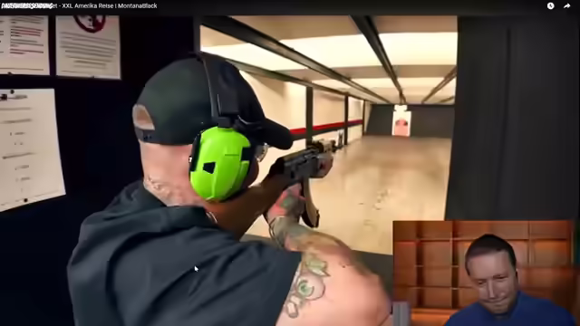 00:46:55Nach dem Frühstück wird ein Skistand besucht. Es wird festgestellt, dass die gewünschten Artikel nicht vorrätig sind. Anschließend wird ein Schießstand besucht, nachdem festgestellt wurde, dass das gesamte Geld im alten Hotelzimmer vergessen wurde. Nach Erhalt des Geldes wird der Schießstand Discount Firearms & Ammo besucht, der von einem Freund von Marc betrieben wird. Es werden verschiedene Waffen ausprobiert, darunter die AK-47 und die Desert Eagle. Der lockere Umgang mit Waffen in den USA wird thematisiert und kulturelle Unterschiede werden betont. Es wird über die Möglichkeit der Selbstverteidigung gesprochen und die Notwendigkeit in den abgelegenen Gebieten Amerikas hervorgehoben. Nach dem Schießen wird in ein neues Hotel, das Waldorf Astoria, eingecheckt, wo ein Upgrade auf die Präsidentensuite erfolgt ist. Es wird die Aussicht und die Ausstattung des Hotels gelobt, allerdings wird das Fehlen von Smart-TVs bemängelt.