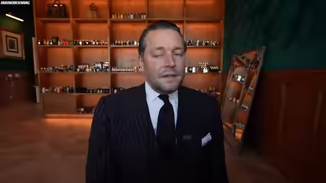 00:11:05Es werden Fragen aus der Community beantwortet, darunter die Meinung zu Rudis, einem Holzduft, der als Meisterwerk und Top-Ten-Duft hervorgehoben wird. Rudis lässt sich gut mit Arabian Cherry oder Duquesa kombinieren und könnte theoretisch auch mit Erba Gold und Erba Pura harmonieren. Ein Code für die Website wird angekündigt, um dem Gehaltseingang der Zuschauer entgegenzukommen. Es wird ein spielerischer Umgang mit dem Thema Geld gepflegt, indem darauf hingewiesen wird, dass es im Kreislauf bleiben muss und nicht auf dem Bankkonto verharren sollte. Der Code "Gehalt" wird aktiviert, was die Vorfreude auf den Duft Rudis verstärkt. Es folgt eine Duftmischung mit Erba Pura, Vendetta, Arabian Cherry und Cocoon, um die Wirkung von Rudis zu testen. Cocoon wird als besonders interessant empfunden, da es das Holz etwas abmildert. Vendetta bringt überraschenderweise Spannung in die Mischung.