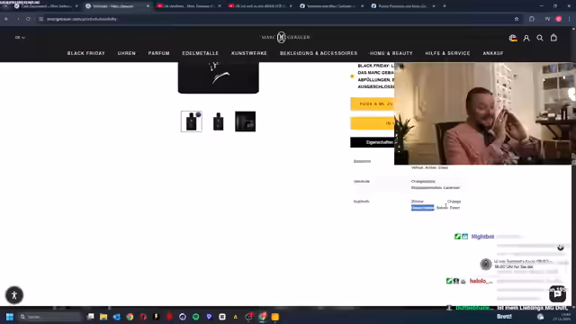 00:34:53Marc testet verschiedene Düfte, darunter Kreationen von Maison Tahit, die er als potenzielle Gratis-Beigaben für Pakete in Betracht zieht. Er ist besonders beeindruckt vom Packaging und dem Duftölgehalt der Produkte. Die Düfte, darunter "Restretto", "Café Gaumont" und "Velvet Coffee", werden von ihm positiv bewertet, wobei er "Café Gaumont" sogar als besser als "Restretto" einstuft und Vergleiche zu Guerlain-Düften zieht. Er ist überrascht über das schlechte Online-Rating einiger dieser Düfte, da er sie persönlich als sehr gut empfindet und sie nicht als feminin wahrnimmt, wie teilweise kritisiert. Marc plant, diese Düfte online zu stellen, falls sie ihm gefallen, und sie zu einem "kranken Preis" anzubieten. Er betont, dass die Düfte eine Bereicherung für den Shop wären und dass sie das Potenzial haben, die Kunden zu begeistern. Außerdem wird ein Armband als Limited Edition für 99 Euro vorgestellt, das unter "Gebauer und Gebauer" auf der Webseite zu finden ist.