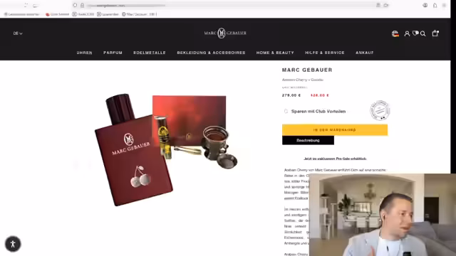 01:35:22Der Streamer berichtet von einem seltsamen Licht in einer Backstube neben seinem Zuhause und wechselt dann zum Hauptthema: die Beratung für ein Parfüm-Discovery Set. Nach Analyse des Budgets und des Geschmacks des Kunden wird ein maßgeschneiderter Bundle mit verschiedenen Düften wie Orange Flamingo, Naxos und Turino zusammengestellt. Der Streamer erwähnt dabei Verpackungsprobleme und empfieulte Produkte. Im Anschluss wird der Pre-Sale für Arabian Cherry beworben, inklusive eines Räuchersets als beigefügtes Angebot.