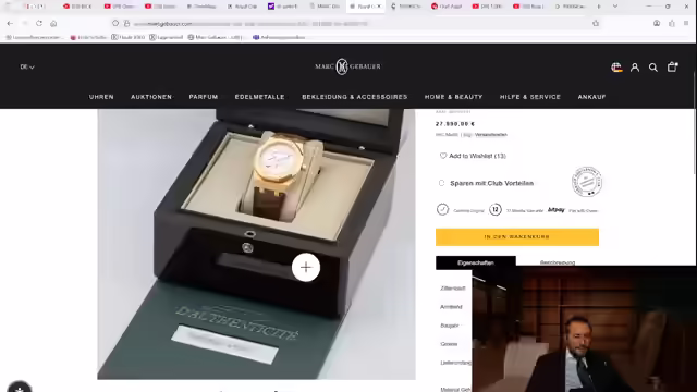 01:20:09Einem Zuschauer namens Zarnbecks wird eine gelb-goldene Submariner mit Brillantziffernblatt vorgestellt, die exklusiv in Düsseldorf verfügbar ist. Es wird betont, dass man Entscheidungen nicht immer überdenken sollte und dass diese Uhr für besondere Anlässe gedacht ist. Es wird ein Szenario entworfen, in dem Zarnbecks mit seiner Partnerin in einem Mustang fährt und sich fragt, wie er es so weit gebracht hat, um die Motivation zu unterstreichen, die Uhr zu erwerben. Es wird betont, wie wichtig es ist, diese Motivation aufrechtzuerhalten. Anschließend wird angekündigt, dass noch Dreharbeiten mit Michael geplant sind und Viktoria anwesend ist. Es wird kurz auf die Notwendigkeit von Atemübungen eingegangen, um wieder Energie zu tanken. Abschließend wird die Frage eines Zuschauers bezüglich des Wertpotenzials einer Pepsi aus dem Jahr 1997 beantwortet, wobei die Farben und die Unterschiede zur aktuellen Pepsi hervorgehoben werden. Es wird argumentiert, dass die Vintage-Uhr aufgrund ihrer charakteristischen Farbe und des Aluminium-Materials ein Sammlerstück wird und eine gute Preis-Leistung bietet.