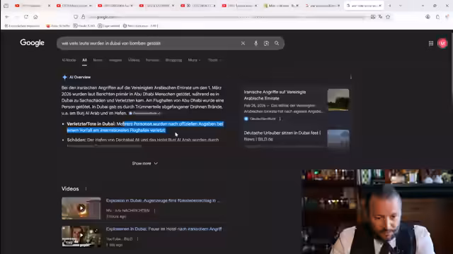 01:17:17Es wird die aktuelle Lage in Dubai thematisiert, wobei der Streamer mit mehreren Einheimischen telefoniert hat und deren subjektive Erfahrungen teilt: Es sei todesentspannt und das Leben gehe normal weiter. Im Gegensatz dazu werden deutsche Medien kritisiert, eine Weltuntergangsstimmung zu verbreiten. Zur Untermauerung werden deutsche Kriminalstatistiken (rund 600 tägliche Gewaltdelikte) mit den offiziellen Zahlen aus Dubai nach einem Angriff verglichen, um zu verdeutlichen, dass die Gefährdung statistisch geringer erscheint.