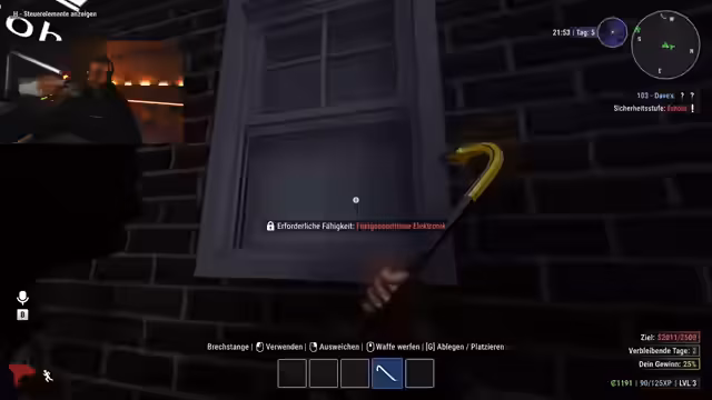 04:13:08In einer letzten Verzweiflungstat versuchen die Spieler erneut, in das Haus einzubrechen, um das verbleibende Tagesziel zu erreichen. Sie finden jedoch, dass die Hausbesitzer das Anwesen gesichert und einen neuen Alarm installiert haben. Der Versuch scheitert kläglich, ein Spieler stirbt im Keller, und die Gruppe scheitert an der Zeit, das letzte Ziel zu erreichen.