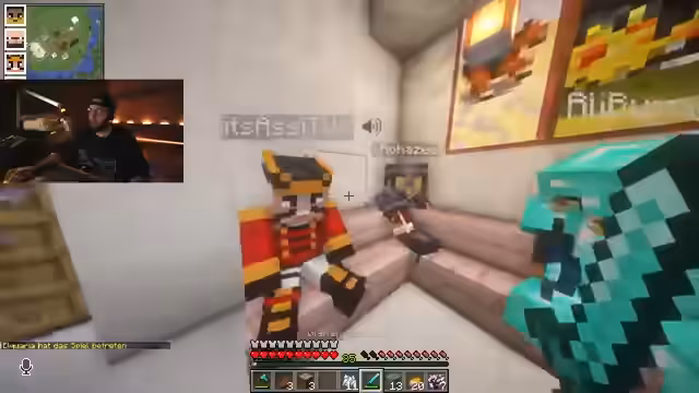 03:40:04Der Streamer führt ein Interview mit der Persönlichkeit Asi TV, einem Bewohner des Fitna-Craft-Servers. Asi TV beantwortet Fragen zu seiner Person, seiner Community und seinen Plänen. Themen sind unter anderem seine angebliche Verheimlichung eines Umzugs, seine Gedanken über andere Teilnehmer und seine Absichten, Twitch Deutschland zu beeinflussen. Das Gespräch wird von einem wiederkehrenden Running Gag, dem Boxring, der immer wieder zerstört wird, unterbrochen und begleitet.