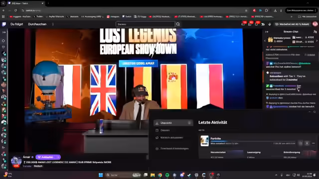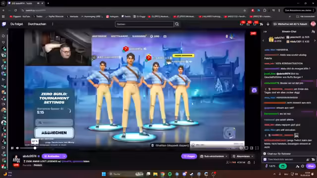 04:37:23Die Streams geht mit einer neuen Runde weiter, in der der Streamer begeistert ist, endlich wieder gegen stärkere Gegner zu spielen. Er erwähnt ein neues Teammitglied namens Abdo und plant für den nächsten Tag ein Duo-Spiel gegen seinen Red, bei dem der Verlierer ein Making-Video machen muss. Nach der Runde plant er, seine Account-Einstellungen in Fortnite zu überprüfen und möglicherweise ein solches Duo zu starten. Er betont, wie wichtig es ist, sich auf das morgige Event vorzubereiten.