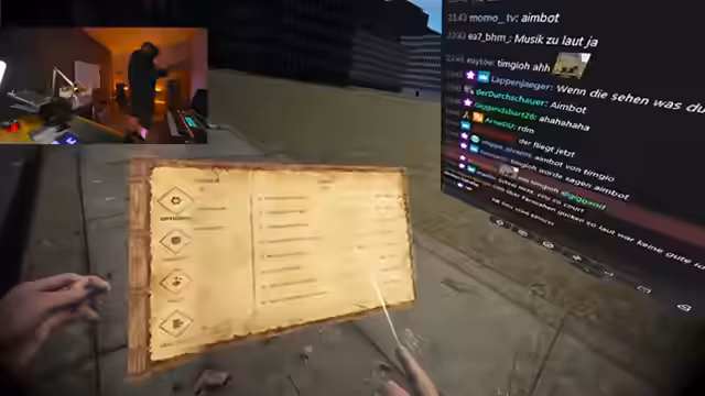 01:47:40Der Stream wechselt vom Simulationsthema zu einem Videospiel. Der Streamer startet Blade & Sorcery in der Sandbox-Version und versucht, mit den installierten Mods zurechtzukommen. Nach anfänglichen Schwierigkeiten mit der Steuerung und der Navigation im Spiel wird versucht, sich Waffen zu beschaffen und in einem Duell gegen NPCs zu kämpfen, was aber auf erhebliche technische und spielmechanische Probleme stößt.