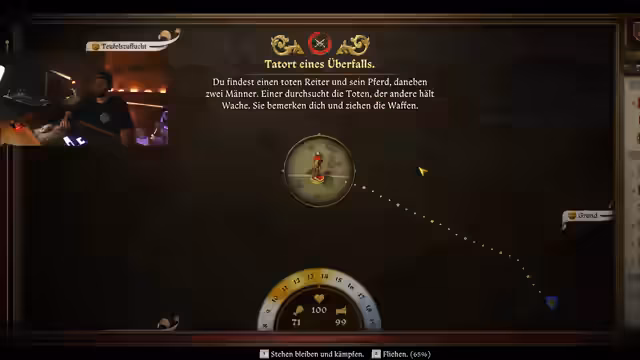 10:05:22Der Stream startete in das mittelalterliche Rollenspiel Kingdom Come. Der Streamer erwähnte einen zuvor erhaltenen Raid von dem Kanal 'Sergio', was für einen Zuschauereinstrom sorgte. Er stellte sich seinen Charakter, Isamu, vor und kommentierte das Spiel mit einer Mischung aus Entspannung und gelegener Frust über die Mechaniken, wie z.B. das Würfeln im Badehaus.