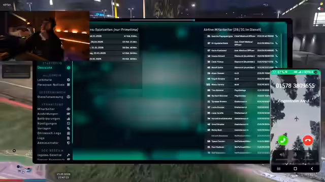 03:29:40Die Eskalation spitzt sich zu. Die Person Agathoff droht dem Streamer via Anruf und behauptet, Beweismaterial in Form von Videos zu besitzen, die das MD in ein schlechtes Licht rücken könnten. Der Streamer droht im Gegenzug mit Anzeigen und einem großen Einsatz, ruft den Chief, Herrn Hoffmann, an und will den Vorfall über Weezer News klären. Eine direkte Konfrontation zwischen den Parteien droht.