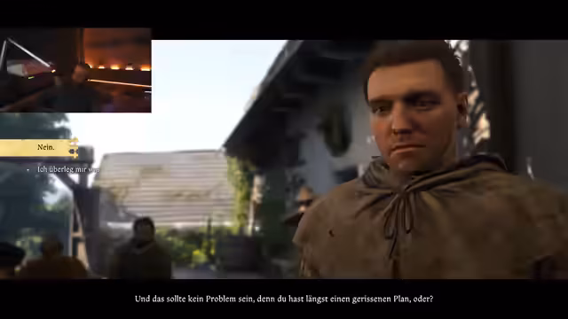 07:06:02Die Situation eskaliert dramatisch, als die Gruppe in eine Schlägerei verwickelt wird und am Pranger landet. Der Protagonist ist fassungslos und fragt sich, wie es dazu kommen konnte. Hans schiebt die Schuld auf den Protagonisten, der sich wiederum verteidigt und Hans' Verantwortungslosigkeit kritisiert. Die Vorwürfe reichen von Hans' mangelndem Verständnis für die Welt bis zu seiner Fixierung auf Huren und Wein. Der Protagonist fühlt sich schlecht behandelt und beleidigt, da er sich für Hans ein Bein ausreißt, aber nur Anschuldigungen erntet. Die Diskussion erreicht einen Höhepunkt, als der Protagonist Hans vorwirft, nicht einmal auf seinen Hund aufpassen zu können. Die Szene endet mit einem heftigen Streit, der die angespannte Beziehung zwischen den beiden Charakteren verdeutlicht und die Konsequenzen ihrer Handlungen aufzeigt. Die Spieler müssen nun einen Weg finden, aus dieser misslichen Lage herauszukommen und die Mission fortzusetzen.