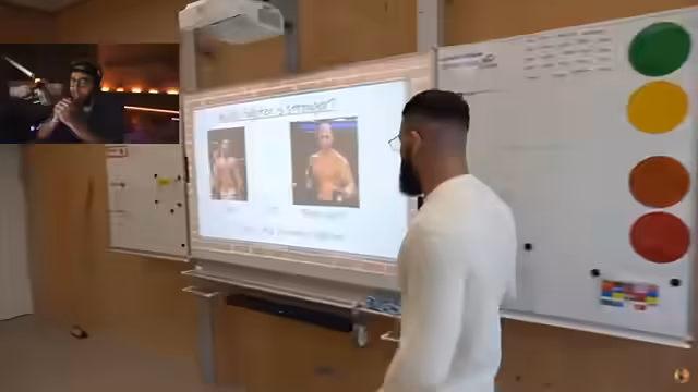 00:37:16Edis soll im Englischunterricht den Schülern beibringen, wie man Adjektive steigert und richtig benutzt. Der Streamer erinnert sich an seine eigene Schulzeit und die Schwierigkeiten mit Adjektiven. Edis startet den Unterricht mit einer Vorstellungsrunde auf Englisch, bei der die Schüler ihren Namen, ihr Alter und ihre Hobbys nennen sollen. Es kommt zu humorvollen Momenten, da einige Schüler Schwierigkeiten mit der englischen Sprache haben. Edis diktiert einen Satz, der auf seine eigene Weightcut-Erfahrung anspielt: "Morgen ist nicht vorbei. Er will eine zweite Waage. Nun habe ich mein Gewicht, aber er will morgen noch eine Waage auf 80 Kilo. Wie auch immer, Bruder, mein Englisch ist tot." Die Schüler versuchen, den Satz ins Englische zu übersetzen, und der Streamer ist gespannt, wer die Aufgabe am besten meistert.
