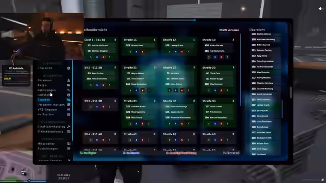 03:34:23Der Stream simuliert einen Notruf beim Polizeieinsatzzentrums, bei dem Anrufer Peter Meier über mehrere getunte Fahrzeuge und illegale Straßenrennen im Stadtpark klagt. Der Anrufer wirkt sehr aufgebracht und gibt mehrere Fahrzeugdetails wie Rota, Corvette, Lowrider und Goldtrain an, was zu der Entsendung einer Streife führt. Interaktive Elemente, bei denen Zuschauer per Chat einen Einfluss auf die Simulation nehmen können, sind ebenfalls Teil dieses Szenarios.