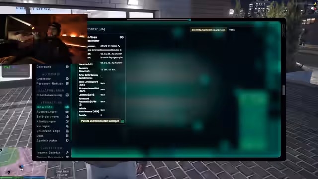 00:35:00Der Streamer beendet das Socializing und geht direkt in das Rollenspiel-Element des Streams über. Er schlüpft wieder in die Rolle von Dr. Oleke und beginnt mit einer dienstlichen Situation. Sein Assistent Helmut meldet sich und berichtet von einem Vorfall, bei dem Helmut angeblich erpresst wurde. Dies führt zu einer Konfrontation und dem Entschluss, die Angelegenheit bei einem Verdächtigen aufzuklären.