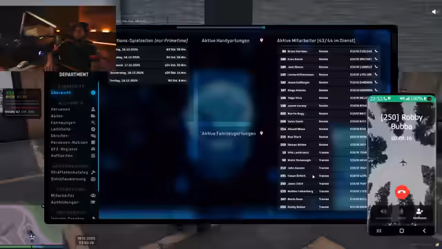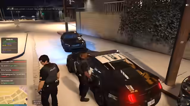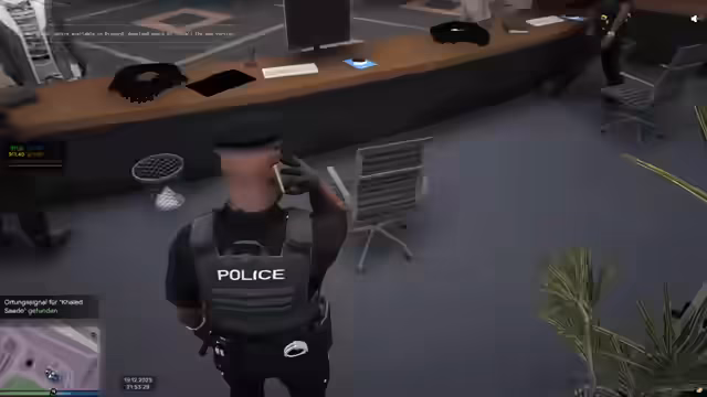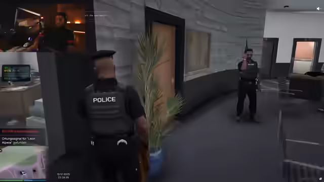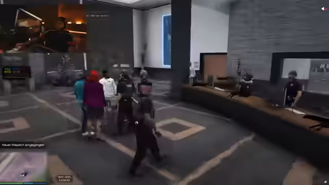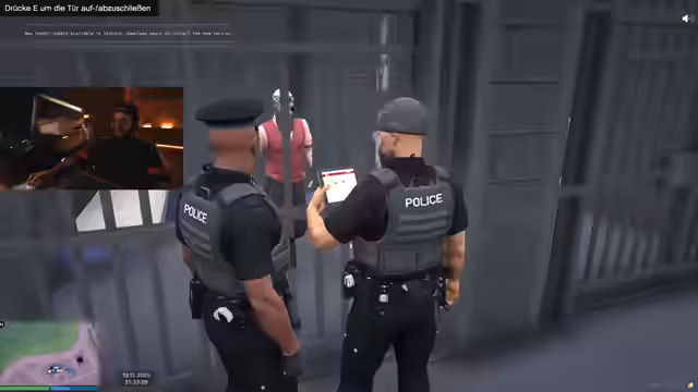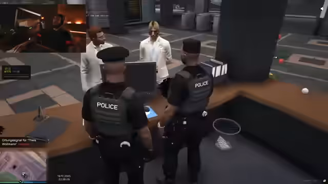 04:29:59Eine Person fragt nach der Möglichkeit, eine Anzeige zu erstatten, und wird humorvoll auf die Notwendigkeit eines 'PD-PC' verwiesen, was die bürokratischen Hürden im Rollenspiel aufzeigt. Kurz darauf wird ein Auto gemeldet, das zuvor in der Tokyo Street aufgefallen war und nun am MD gesichtet wird. Es wird um Verstärkung gebeten, da die Insassen bereit zur Flucht sind. Die Situation eskaliert, als das Fahrzeug wegfährt und die Möglichkeit eines Schusswaffengebrauchs diskutiert wird. Die Charaktere begeben sich zum PD, um eine Besprechung abzuhalten. Währenddessen wird die Suche nach bestimmten Personen wie 'Herr Damli' oder 'Herr Scheid' thematisiert, die im Haus nicht anzutreffen sind. Die Stimmung ist angespannt, da es Berichte über eine 'Massenschießerei beim Unicorn' gibt, was die allgemeine Hektik und Gefahr im Spiel unterstreicht. Die Szene wechselt zu einer humorvollen Einlage, in der ein Charakter einen 'Scheißhaufen in der Lobby' hinterlassen hat und diesen selbst entfernen muss, was die alltäglichen, aber skurrilen Aufgaben im Dienst verdeutlicht.