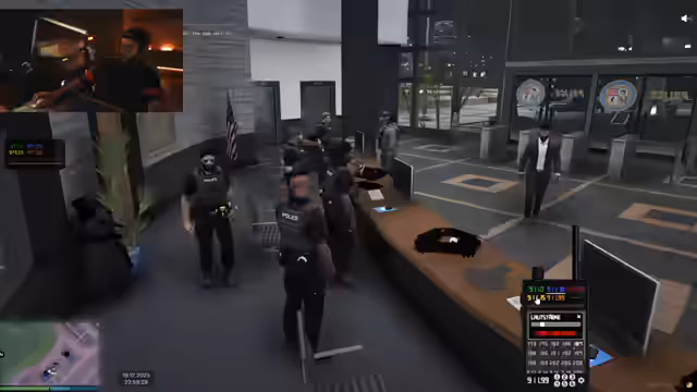 03:22:30Herr Russo, der ranghöchste Beamte im Dienst, wird über Anfragen nach Pit-Freigaben informiert und übernimmt die Steuerung des Einsatzes von der Zentrale aus. Er versichert, dass er erreichbar ist und gibt Anweisungen bezüglich der Funkkanäle. Ein Kollege namens Mahir Osmanolo erkundigt sich nach Dienstaufsichtsbeschwerden, was jedoch auf später verschoben wird. Kurz darauf wird ein Dispatch über fünf nackte Männer auf der Tokyo Street gemelgt, die Leute belästigen. Eine Streife wird entsandt. Herr Oleke muss sich auch um die Gefangenen von der Casa Vieira Razzia kümmern, die noch in den Zellen sind und deren Akten unklar sind. Er entscheidet, ihnen eine kleine Strafe zu geben und sie freizulassen, um den Aufwand zu minimieren. Später wird die Tokyo Street erkundet, die als wunderschön und an Cyberpunk erinnernd beschrieben wird, mit Geschäften und einer Sauna. Es kommt zu einem Überfall auf Polizisten auf der Tokyo Street, bei dem sie getasert und ausgeraubt werden. Herr Oleke ist frustriert über die wiederholten Überfälle und möchte nicht mehr auf Streife gehen.