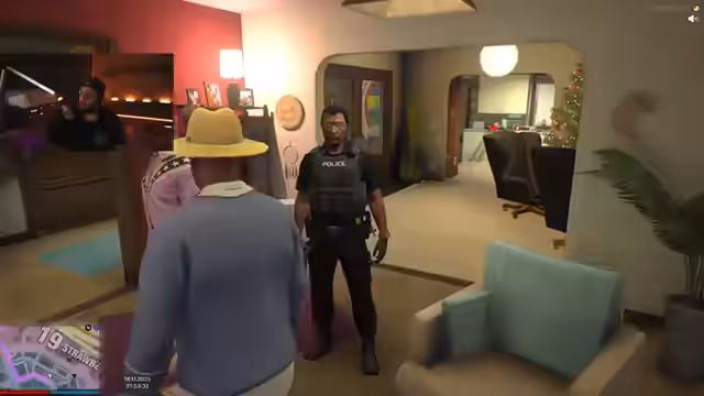 02:15:57Der Streamer versucht, eine angespannte Situation im Chat zu deeskalieren, indem er die Zuschauer auffordert, sich nicht wegen eines Fußballspiels aufzustacheln. Er betont, dass die Spieler Geld verdienen, während die Zuschauer sich streiten. Kurze Zeit später wird er in ein Rollenspiel verwickelt, in dem er als Taxifahrer Oleke agiert und einen Fahrgast namens Achim Sumer zu einem berüchtigten Haus in der Davis Street bringt. Während der Fahrt unterhalten sie sich über die Stadt und das Wohlbefinden des Fahrgastes. Nach der Ankunft trifft Oleke auf Ulrike und Herrn Salami, die sich über aktuelle Nachrichten und einen gestohlenen Grill unterhalten. Herr Salami beschwert sich über die Nachbarn, die laut sind und ihm den Grill gestohlen haben. Die Gruppe beschließt, die Nachbarn zur Rede zu stellen, wobei Herr Salami einen Racheakt offenbart, indem er ein Sofa von ihnen gestohlen hat. Die Situation eskaliert, als sie die Nachbarn konfrontieren und es zu Anschuldigungen wegen Ruhestörung, Diebstahl und körperlicher Gewalt kommt. Herr Salami wird beschuldigt, Handgranaten auf die Nachbarn geworfen zu haben, was er zunächst leugnet, dann aber als 'kleine Grenadchen' herunterspielt. Die Diskussion dreht sich um friedliches Miteinander und die Möglichkeit einer Barbecue-Party, um die Wogen zu glätten. Ein Pädagoge namens Bernd Wolters wird erwähnt, der bei der Lösung von Problemen helfen könnte. Die Polizei wird hinzugezogen, um die Situation zu beruhigen, und es kommt zu weiteren verbalen Auseinandersetzungen über Drogenkonsum und die Entsorgung von Substanzen. Die Beamten nehmen die Drogen entgegen und versichern, dass sie für Anzeigen und sonstige Anliegen jederzeit zur Verfügung stehen.