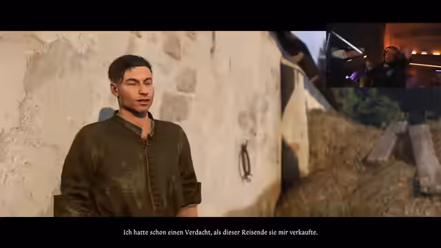 09:17:08In Trostowicz wird versucht, Informationen über Pavlena zu sammeln. Ein Gespräch mit einem Mann offenbart, dass dieser ein Problem mit Pavlena hat und sie als 'Hure' bezeichnet, was auf eine komplizierte Beziehung hindeutet. Der Streamer wird zur Schenke geschickt, um weitere Informationen zu erhalten. Währenddessen wird die Farbe für die Hochzeit besorgt, wobei der Streamer mehr über Färbemittel und deren Herstellung lernt, als er erwartet hätte. Ein unerwartetes Ereignis tritt ein, als der Streamer beim Versuch, Essen zu stehlen, erwischt wird. Anstatt bestraft zu werden, muss er Kuchen backen, was die skurrile Natur des Spiels unterstreicht. Die Zeit drängt, da die Hauptquest in Semin fortgesetzt werden muss, und die Gefahr besteht, dass die anderen Charaktere ohne den Streamer aufbrechen.
