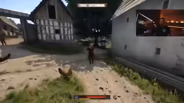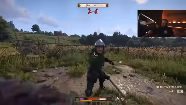 08:54:52Nach langem Überlegen und der Unsicherheit, ob die Zeit für die Rettung von Köter ausreicht, wird entschieden, direkt nach Semin zu gehen, um die Hauptquest fortzusetzen. Dort angekommen, treffen sich die Charaktere im Burghof, um die Suche nach einem verschwundenen Wagen zu besprechen. Es wird erwähnt, dass auf dem Weg nach Trostowicz immer wieder Leute verschwinden. Herr Semin fordert den Streamer zu einem ehrenhaften Duell heraus, um dessen Kampffähigkeiten zu testen. Der Streamer wird vor die Wahl gestellt, mit einer Axt oder einer Feder zu kämpfen, wobei die Feder als mächtiger als das Schwert dargestellt wird. Trotz anfänglicher Schwierigkeiten und der Wahl der Feder gelingt es dem Streamer, das Duell zu gewinnen, was zu Respekt und der Übergabe eines Knüppels führt.