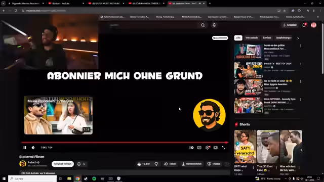 01:07:10Der Streamer reagiert auf ein Video, das offensichtlich humoristische oder ungewöhnliche Anmachsprüche beinhaltet, und zeigt sich überrascht über die Inhalte. Währenddessen treten technische Probleme mit der Audio- oder Videoausgabe auf, die er versucht zu beheben. Es wird klar, dass ein Teil der Aufnahme hinter der Bildschirmaufnahmeszene lag, wodurch die Zuschauer den Inhalt nicht sehen konnten. Er entschuldigt sich für die technischen Schwierigkeiten und verspricht, später auf den gesamten Support und die Re-Subs einzugehen, um sich zunächst auf das Video zu konzentrieren. Die im Video gezeigten Anmachsprüche, wie die Frage nach dem Alter oder dem Geburtsdatum, werden als amüsant empfunden, wobei der Streamer die Absurdität der Situation hervorhebt. Er kommentiert die Reaktionen der angesprochenen Personen im Video und die oft unerwarteten Wendungen der Gespräche.