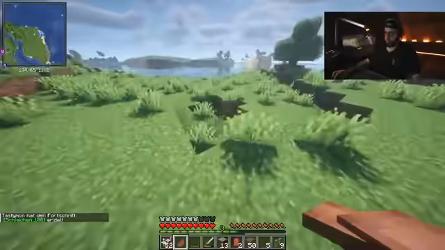 04:59:33Zu Beginn des Streams erklärt der Spieler die spezifischen Regeln für das Einmischen in Spielkonflikte. Es geht darum, dass bestimmte Spieler wie Matze sich einmischen dürfen, während andere wie er selbst und Norex sich nicht einmischen sollen. Danach startet die Crafting-Phase: Es werden Holz-Pickaxes und Workbenches hergestellt, während unter Wasser eine Pyramide mit einem Boss (Jigan) erkundet wird. Dabei diskutieren die Spieler Boote und Kisten mit potenziellen Belohnungen wie Eisen und Diamanten. Es folgt das Crafting von Stein-Werkzeugen (Steinschwert, Spitzhacke, Axt), wobei sie unter Wasser kämpfen und über die beste Vorgehensweise nachdenken.