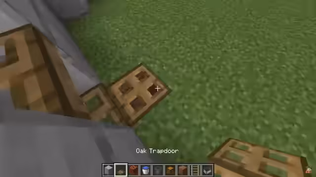 03:53:06Mit der Errichtung der Farm wird begonnen, indem eine zwei Blöcke hohe Mauer als dunkler Spawn-Bereich gebaut wird. Es entsteht eine kreisförmige Struktur, in der Falltüren auf dem Boden platziert werden, gefolgt von Magma-Blöcken, die Schaden verursachen. Erklärt wird der Mechanismus: Creeper erkennen die umgeklappten Falltüren als begehbar und fallen so in die Falle. Ähnliche Fallen werden auf allen Seiten der Farm errichtet.