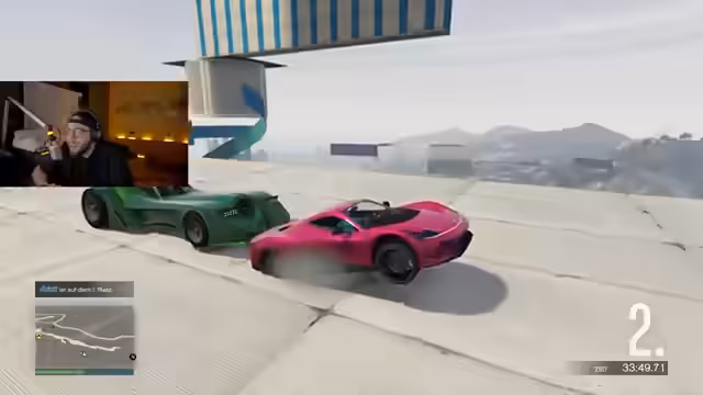 02:55:00Die Teilnehmer kämpfen mit einer speziellen Wallride-Herausforderung, die als 'trollhaft' und 'scheiße' beschrieben wird. Die Map erfordert präzise Manöver und das Nutzen von Autos als Rampe. Gleichzeitig gibt es technische Probleme mit dem Internet, was die Situation zusätzlich erschwert und den Streamer frustriert.