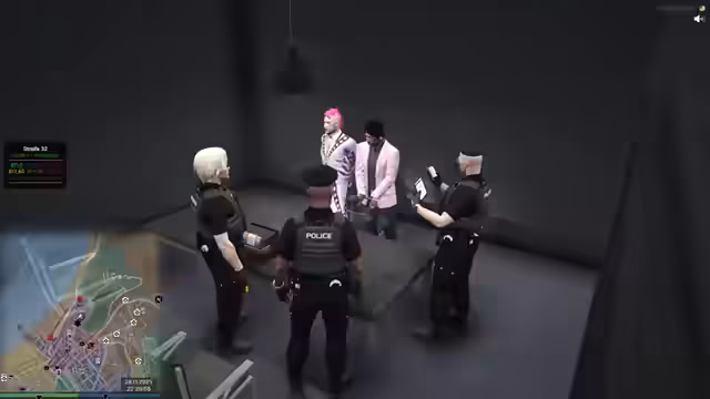 02:40:46Nach der Festnahme wird der Verdächtige, Herr Ben, ins PD gebracht. Es kommt zu einer Diskussion über die Regeln des Polizeidienstes, wobei Herr Ben betont, dass man zuerst schießen und dann reden sollte. Es wird auch über einen Wohnwagen in Sandy Shores gesprochen, der weitergefahren werden soll. Die Stimmung ist angespannt, und es wird über die Loyalität innerhalb des PD als 'Familie' gesprochen. Ein Kollege, Peter, wird wegen seiner Mütze kritisiert, und seine Personalien werden für die Akte aufgenommen. Die Anklagepunkte umfassen illegalen Waffenbesitz, Flucht, Angriff auf Staatsbeamte, Körperverletzung, Beleidigung und Belästigung. Die Strafe beläuft sich auf 4.450 Dollar und 30 Haftstunden. Es wird auch über die Musik in der Lobby gesprochen und die Notwendigkeit, einen anderen 'Skit' zu finden.