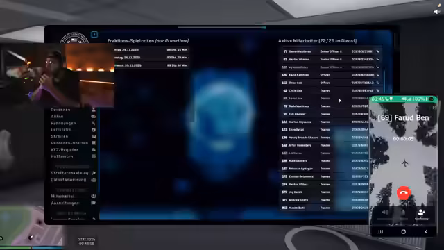 02:46:56Es kommt zu einer weiteren Verfolgungsjagd, bei der ein weißes Fahrzeug gesucht wird. Die Kommunikation im Funk ist unklar, und es wird über die Notwendigkeit von Training gesprochen, was jedoch abgelehnt wird. Es wird über die Möglichkeit gesprochen, einen Heli zu bekommen, wenn man sechs weitere Kills hat. Die Idee eines Orbital-Strikes auf das PD oder MD wird humorvoll diskutiert, insbesondere auf den 'Slip Club' und seinen Besitzer Helmut. Eine erneute Verfolgungsjagd beginnt, und es wird versucht, den Verdächtigen anzuhalten. Die Situation eskaliert erneut, und es kommt zu einem Zusammenstoß, bei dem das Fahrzeug beschädigt wird. Die Verfolgung führt zu einer Konfrontation im 'O-Block', wo eine Gruppe von Personen die Cops kritisiert, die durch ihre Straße fahren. Die Situation wird als gefährlich eingestuft, und es wird über die Möglichkeit einer Razzia nachgedacht.
