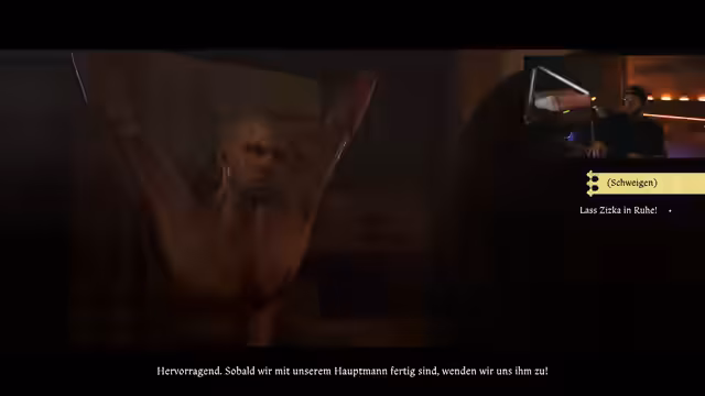 07:05:55Nach dem Erwachen findet sich die Gruppe in einer Burg wieder, die von Hauptmann Nebag und den Verrätern Jobst und Wenzel besetzt ist. Es kommt zu einem angespannten Gespräch, in dem der Hauptmann Informationen über die Pläne der Verräter erzwingen will. Die Situation eskaliert, als der Pfarrer unter vier Augen mit dem Hauptmann spricht und Informationen über den geplanten Aufstand in Kuttenberg preiszugeben scheint.