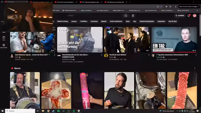 00:27:28Der Streamer diskutiert aktuelle YouTube-Videos, darunter ein neues Video von EratschTV, das er als 'Psychose' beschreibt. Er plant, das Video zu schauen und bittet das Publikum, Vorschläge für weitere Videos im Discord zu posten. Genannt werden ein Video über 'Ein Tag beim deutschen Geheimdienst' (Tomatix) und ein anderes über einen Polizeieinsatz in Berlin (110). Die Community wird aktiv einbezogen, um Inhalte für den Stream zu bestimmen.