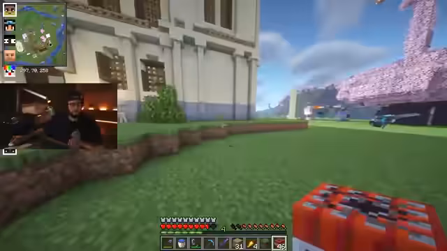 02:07:30Gigant berichtet, dass er mehrfach Rathäuser aufgebaut hat, während Piché stattdessen eine TNT-Farm errichtete. Letztere wurde jedoch von anderen Spielern zerstört. Zwischen den Teilern entwickelt sich eine Diskussion über persönliche Projekte wie den Bau von Parkhäusern. Der Streamer preist Fähigkeiten an und beschreibt, wie er das Rathaus quasi aus dem Gedächtnis errichtet hat. Der Fokus liegt auf den Bemühungen im Spiel und dem Spaß an den gemeinsamen, chaotischen Projekten.