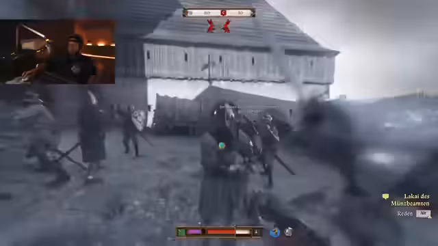08:35:56Nach dem Plänesetzen beginnt die eigentliche Session des Spiels 'Kingdom Come: Deliverance'. Der Streamer trifft in der Burg auf wichtige Figuren wie Herrn Ruthart und Heinrich. Es wird eine Mission zur Festnahme des korrupten Münzmeisters Wawak diskutiert, der Silber für den König stiehlt und eine geheime Mine betreibt.