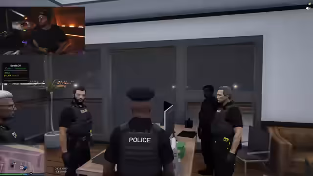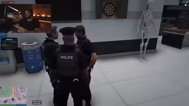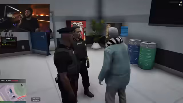 02:12:17Im Rahmen der RP-Session kommt es zu einer Interaktion zwischen den Streamern und einem Officer im Police Department (PD). Die Streamer werden aufgefordert, sich zu entfernen, da sie angeblich die Arbeit des Officers stören. Es kommt zu einem verbalen Schlagabtausch, bei dem der Officer einen mündlichen Platzverweis ausspricht, der laut Gesetz gültig ist. Die Situation eskaliert kurzzeitig, da der Officer die Streamer als 'Gesocks' bezeichnet, was jedoch schnell klargestellt wird. Die Streamer müssen das PD verlassen, um weiteren Ärger zu vermeiden. Diese Szene zeigt die dynamischen und manchmal angespannten Interaktionen, die im Roleplay entstehen können, und wie die Charaktere mit Autoritätspersonen umgehen müssen.