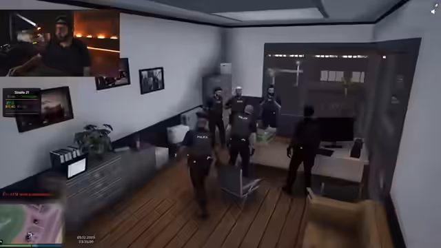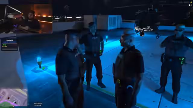 05:28:06Die Verfolgungsjagd erreicht einen kritischen Punkt, als die Polizei Unterstützung anfordert, da der Verdächtige mit der Geldkassette flieht. Der Verdächtige behauptet, keine Kassetten zu haben, sondern lediglich ein Sicherheitsupdate auf seinem Laptop durchgeführt zu haben und eine Geldkassette als Belohnung erhalten zu haben. Trotz der Aufforderung, den Motor abzustellen und auszusteigen, verharrt der Verdächtige. Die Situation eskaliert, als eine Speed Unit am Stadtpark fünf Personen anfährt und die Verfolgungsjagd chaotisch wird. Die Polizei äußert Frustration über die mangelnde Fahrkompetenz einiger Beamter und die Schwierigkeit, den Verdächtigen zu fassen. Es wird über den Einsatz eines Kampfhelikopters nachgedacht, um die Situation unter Kontrolle zu bringen, da die Bodenverfolgung nicht erfolgreich ist. Ein Raid wird von Hector angekündigt, und die Diskussion um die Erteilung einer Kampfhelikopter-Erlaubnis beginnt, wobei ein anderer Chief bereits zugestimmt hat.