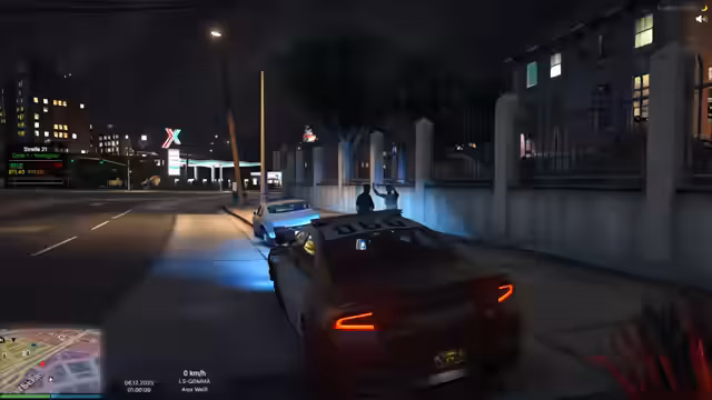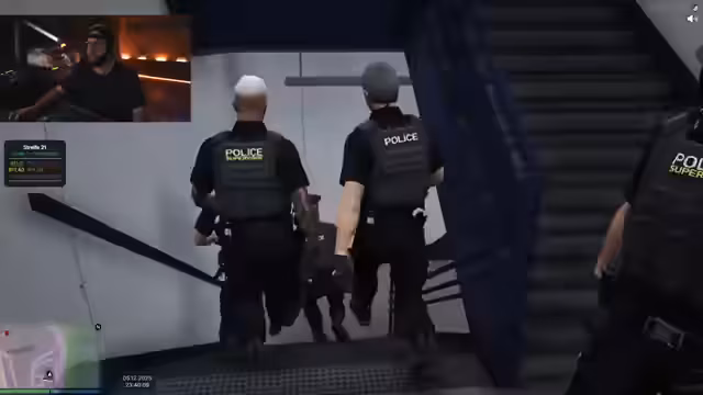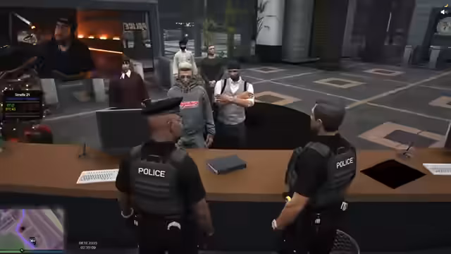 02:03:12Nachdem die Pizza-Testreihe abgeschlossen ist, wechselt der Stream zum Rollenspiel (RP) in Los Santos. Zuerst wird eine Einheit der Polizei inszeniert, bei der es zu einer Verfolgungsjagd und Festnahme eines Verdächtigen kommt. Der Fokus liegt auf der Interaktion mit den Bürgern und der Handhabung von polizeilichen Einsätzen. Anschließend wird der Fokus auf die Verfolgung eines kriminellen Clans gelegt, was zu einer massiven Razzia mit Festnahmen führt.
