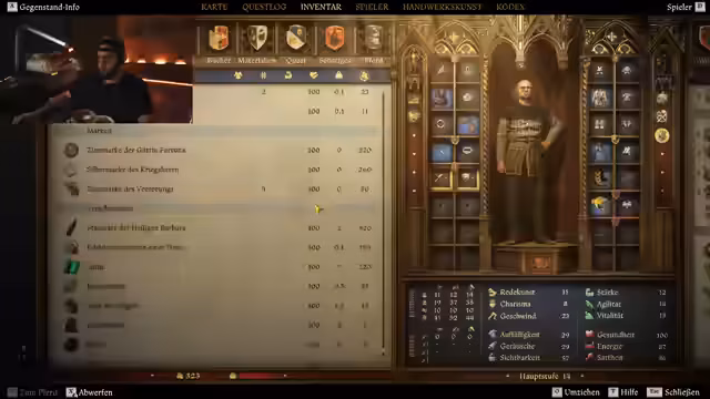 08:18:16Der Protagonist erzielt einen großen finanziellen Erfolg und verfügt nun über 3000 Groschen, was als „Payday“ gefeiert wird, nachdem die letzten Wochen im Spiel finanziell schwierig waren. Die Suche nach einer geeigneten Unterkunft in Kuttenberg beginnt, um die gestohlenen Gegenstände sicher zu lagern und eine Basis für weitere Abenteuer zu schaffen. Es wird diskutiert, ob ein Zimmer mit einer Kiste gebucht werden kann, in der die Gegenstände automatisch synchronisiert werden, was sich als praktisch erweist. Die Suche nach einer Taverne mit einem Kranz, der auf eine Übernachtungsmöglichkeit hinweist, führt zu einigen Missverständnissen und Irrungen. Schließlich wird eine Taverne gefunden, in der ein Zimmer gebucht werden kann, jedoch unter der Bedingung, dass keine Huren erlaubt sind, was zu einem humorvollen Kommentar bezüglich einer anwesenden NPC namens Katharina führt. Das neu gebuchte Zimmer bietet eine Kiste, in der die gestohlenen Gegenstände gelagert werden können, was den Verkaufsprozess erheblich vereinfacht.