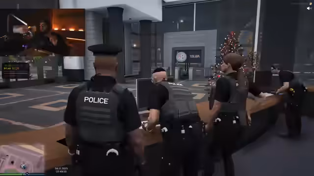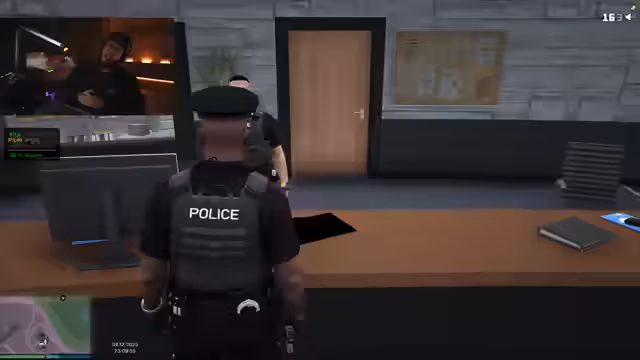 03:35:25Im Polizeidepartment herrscht Chaos, als ein maskierter Mann auftaucht und sich weigert, seine Maske abzunehmen oder seinen Ausweis zu zeigen. Der Streamer, der sich als Officer Ben identifiziert, versucht, die Situation zu deeskalieren, hat aber keine Handschellen dabei. Ein Kollege namens Oleke wird erwähnt, der ebenfalls in Schwierigkeiten steckt, da er seinen Job verloren hat und sich um eine neue Stelle beim PD bewirbt. Es wird ein Bewerbungsgespräch für den nächsten Tag um 20:30 Uhr vereinbart, bei dem Herr Hoffmann anwesend sein soll. Die Situation ist angespannt, da der Streamer und seine Kollegen mit den unkooperativen Bürgern und den internen Problemen des PD zu kämpfen haben. Trotz der Schwierigkeiten versuchen sie, die Ordnung aufrechtzuerhalten und den Bürgern zu helfen, auch wenn dies manchmal zu skurrilen Situationen führt.