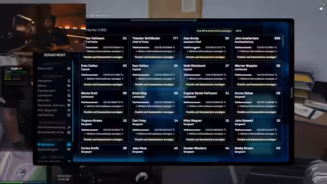 02:37:30Der Streamer äußert erhebliche Frustration über das Polizeisystem, insbesondere über die Quotenerfüllung und die Akkumulation von Minuspunkten. Er droht, dem Bürgermeister Bescheid zu geben und zu kündigen. Anschließend beginnt eine telefonische Konversation mit Herrn Oleke, der sich als Polizeioffizieller zu erkennen gibt. Es wird über anonyme Anrufe bei Dönerläden gesprochen und die Unfähigkeit diskutiert, den Chief anzurufen. Die Stimmung ist angespannt, während versucht wird, die Hierarchie und die Regeln bezüglich von Aktenänderungen und Dienstbeschwerden zu klären.