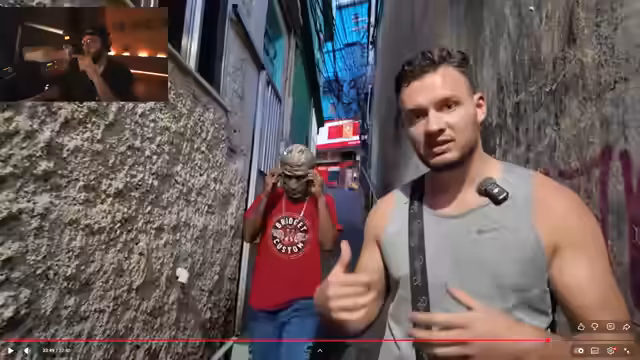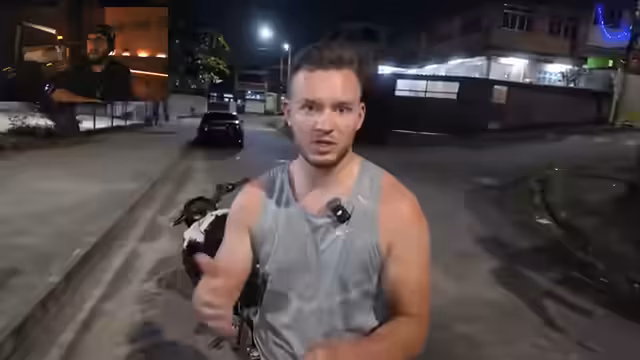 00:06:15Der Streamer erreicht die Favela Villa Kennedy in Rio de Janeiro mit einem Motor-Taxi. Er warnt vor der extrem angespannten Lage und möglichen Schießereien mit rivalisierenden Fraktionen. Bei der Ankunft trifft er auf mehrere bewaffnete Gang-Mitglieder, die ihm einen Überblick über das Gebiet geben. Die Gruppe erkundet die umliegenden Straßen, während der Streamer die gefährliche Atmosphäre und die Präsenz schwer bewaffneter Krimineller beschreibt, die hier zum Alltag gehören.